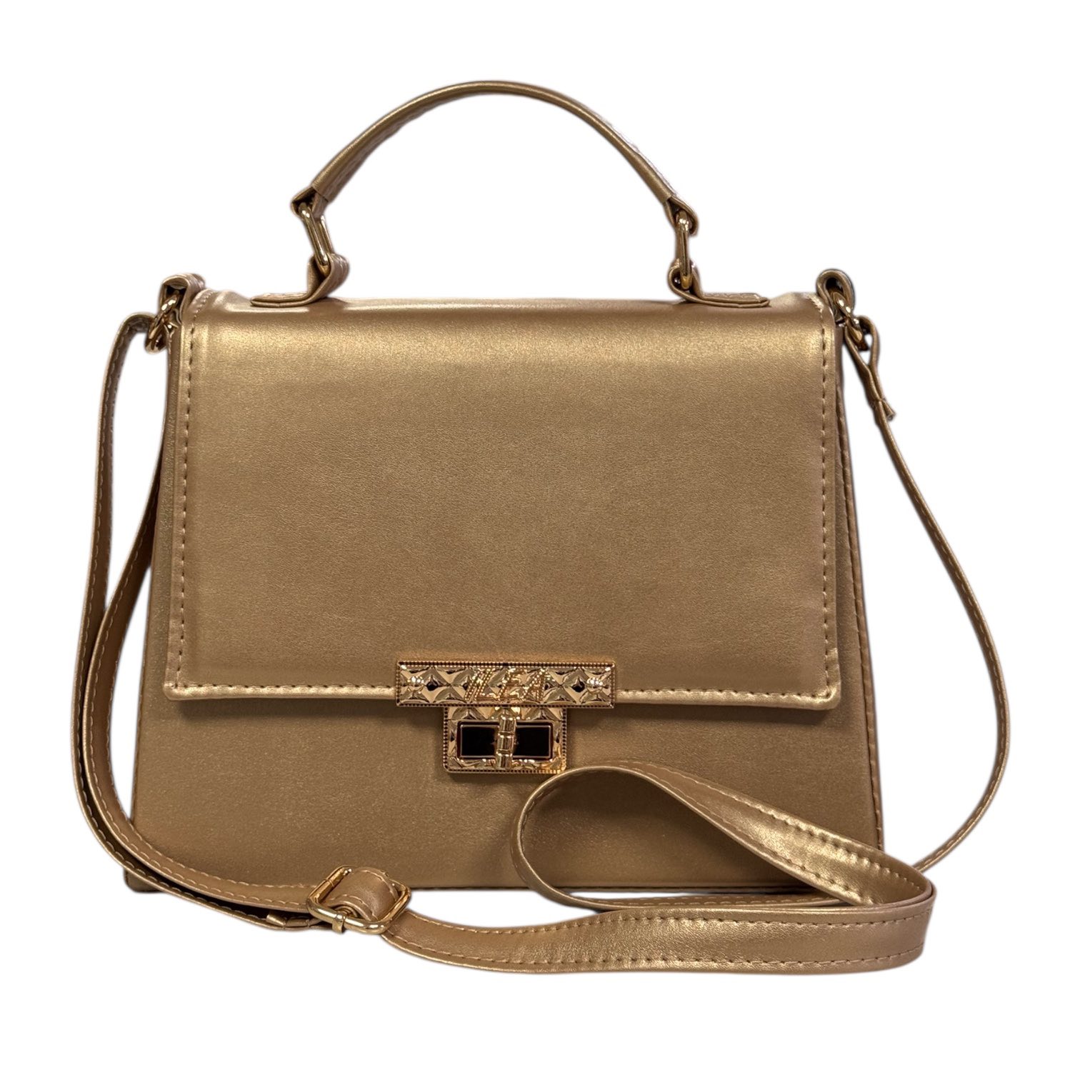 Srednja veličina torbice savršeno spaja funkcionalnost i moderan izgled. Ističe se metalnom kopčom i dolazi sa dva kaiša – jedan dugi za nošenje preko ramena i drugi za ručno nošenje koji vam omogućavaju prilagodljivost u svakodnevnim situacijama. Dostupna u atraktivnim bojama, ova torbica donosi dašak luksuza i praktičnosti za svaku priliku.